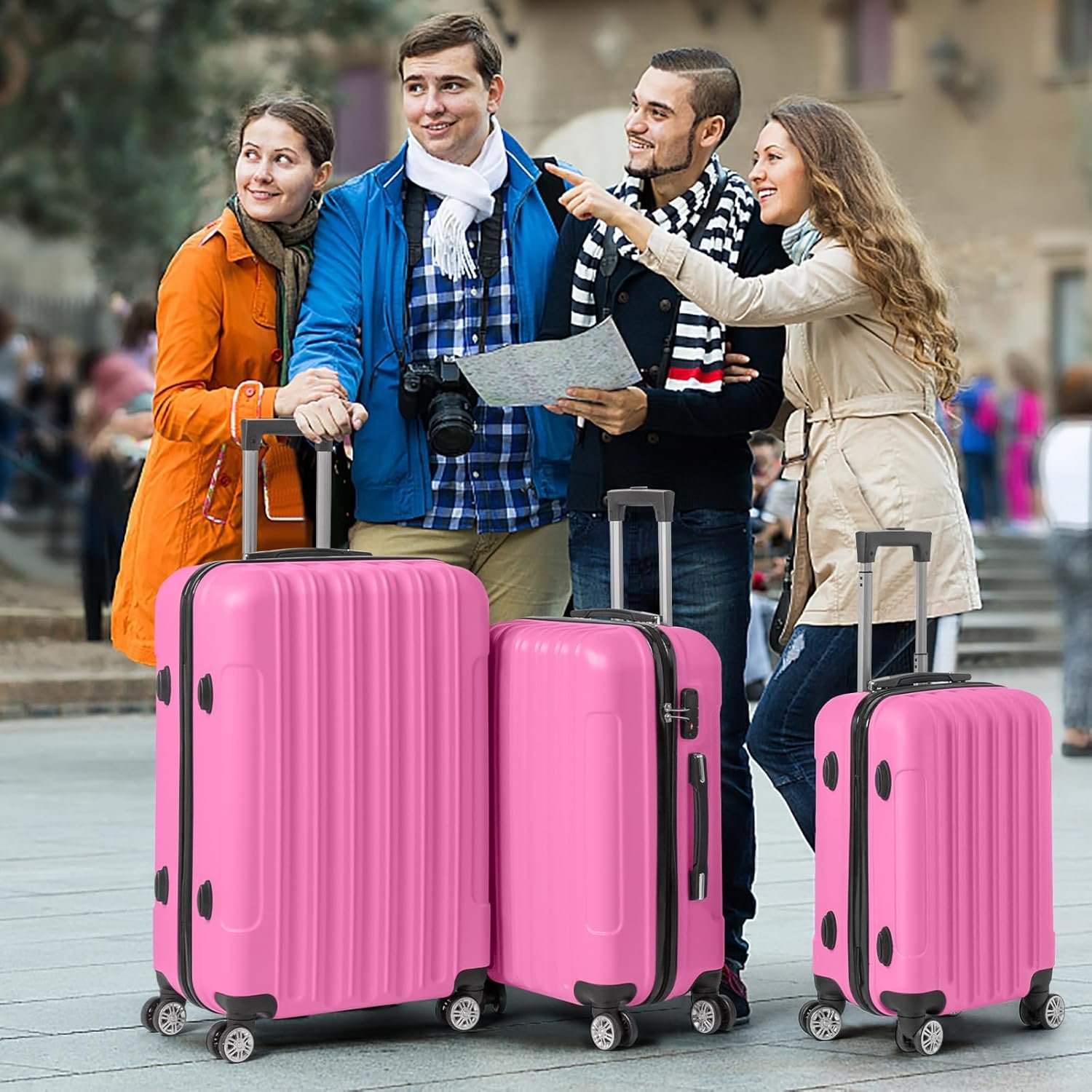 3 Piece Luggage Sets, Lightweight ABS Suitcase wit