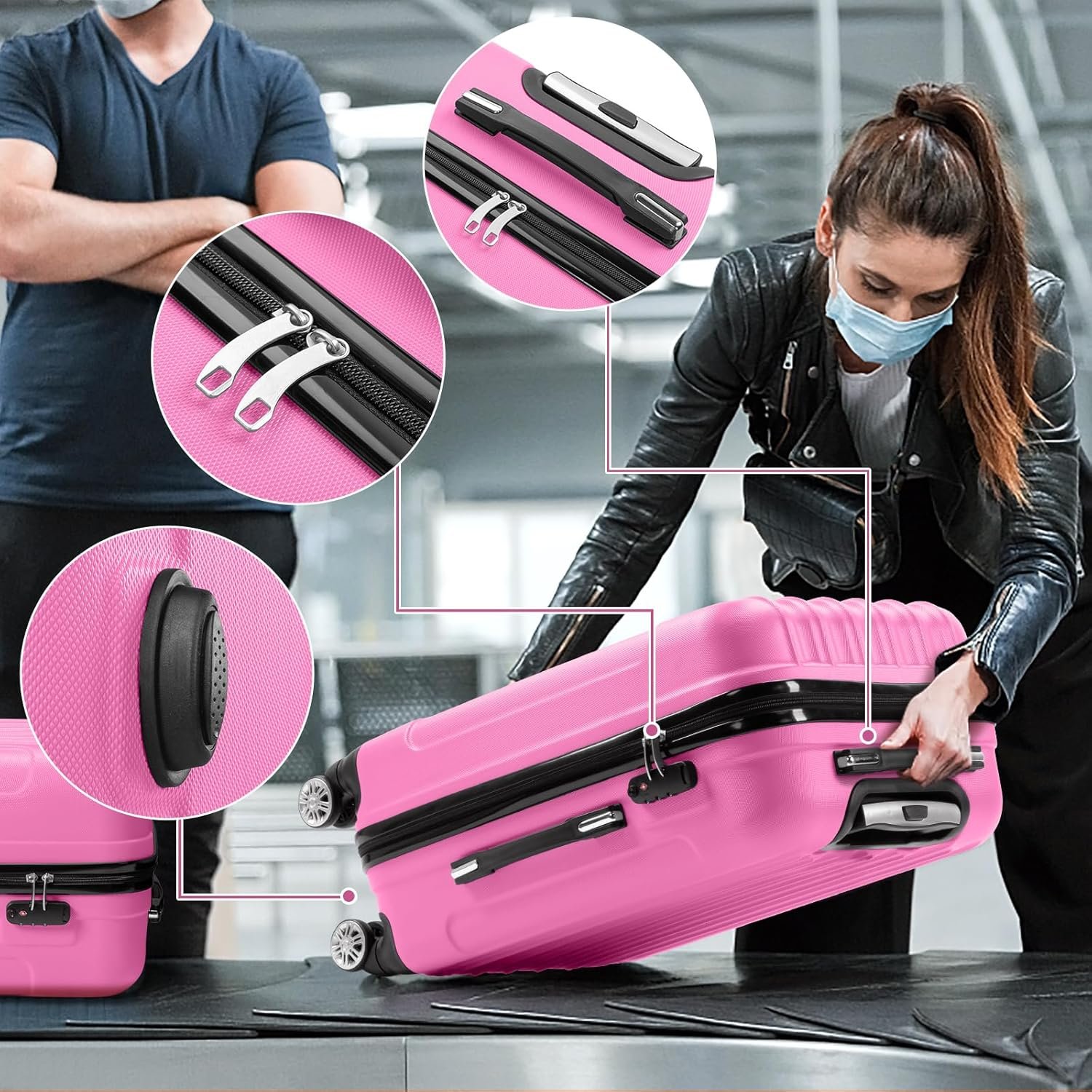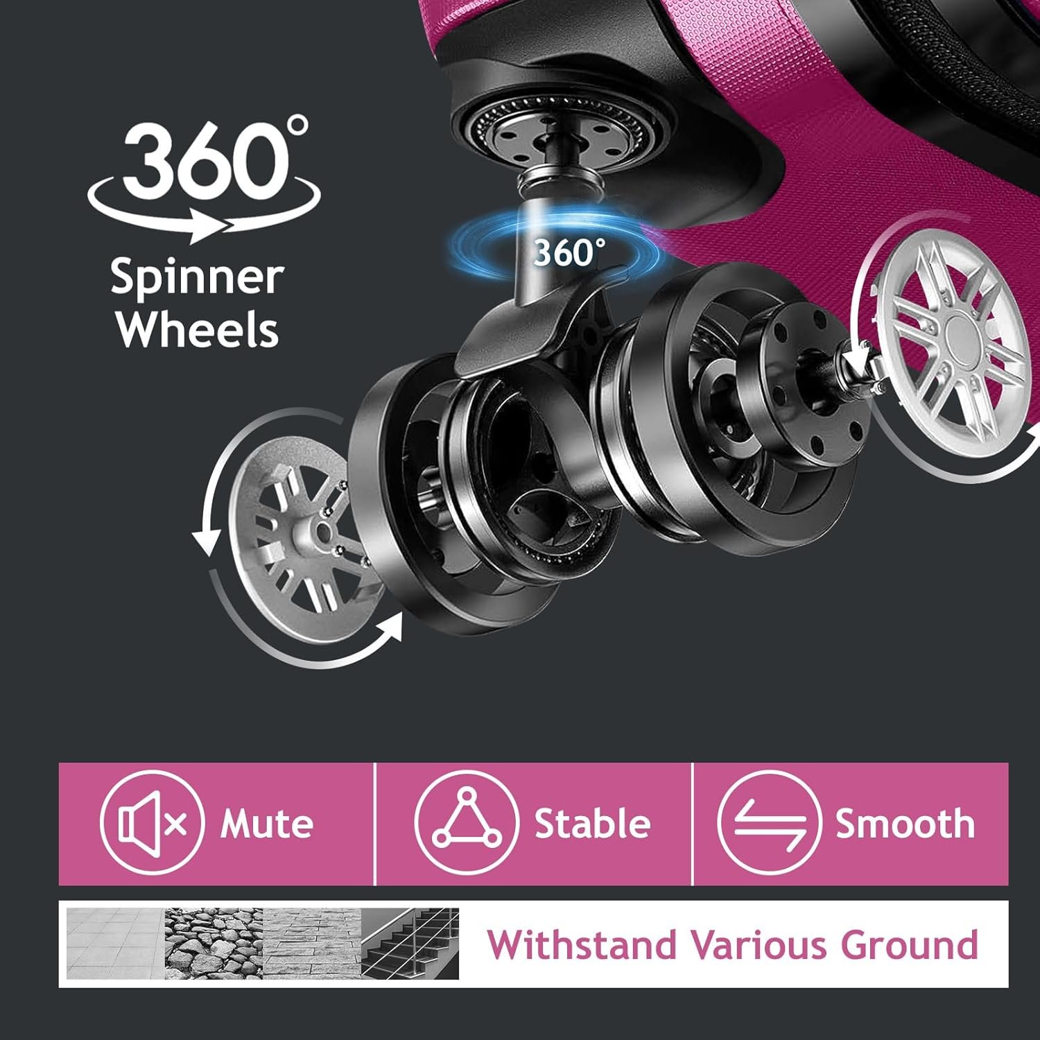 【360° SPINNER WHEELS】Double row of silent wheels make durable luggage set moving in any direction more smooth. And portable handles on the top side can be adapted to various transportation occasions. Ergonomic telescoping handles make your traveling easier!