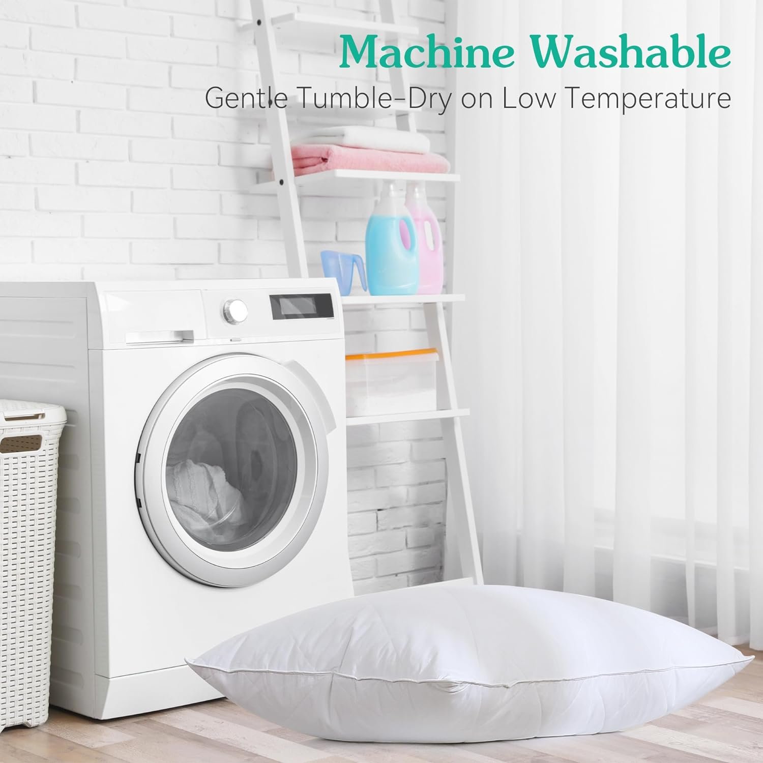 Remove your pillow from the packaging, open the vacuum sealed. The pillow may look flat and compact.Remember to shake, pat and squeeze the pillow repeatedly. Allow air to gradually flow in to fluff the pillow. Then several hours to recover their full loft.Or put it into your dryer on low for 5-10 minutes. Take out the pillow and pat and squeeze it repeatedly.Wash on Gentle Cycle at 30 Degrees. Do Not Bleach. Gentle Tumble-Dry on Low Temperature. Do Not Iron.