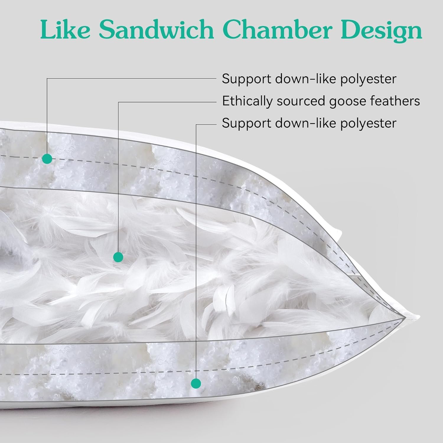 SOFT & SUPPORT – The pillow fillled with premium goose feather and polyester, The medium firmness level offers the perfect balance of comfort and support.