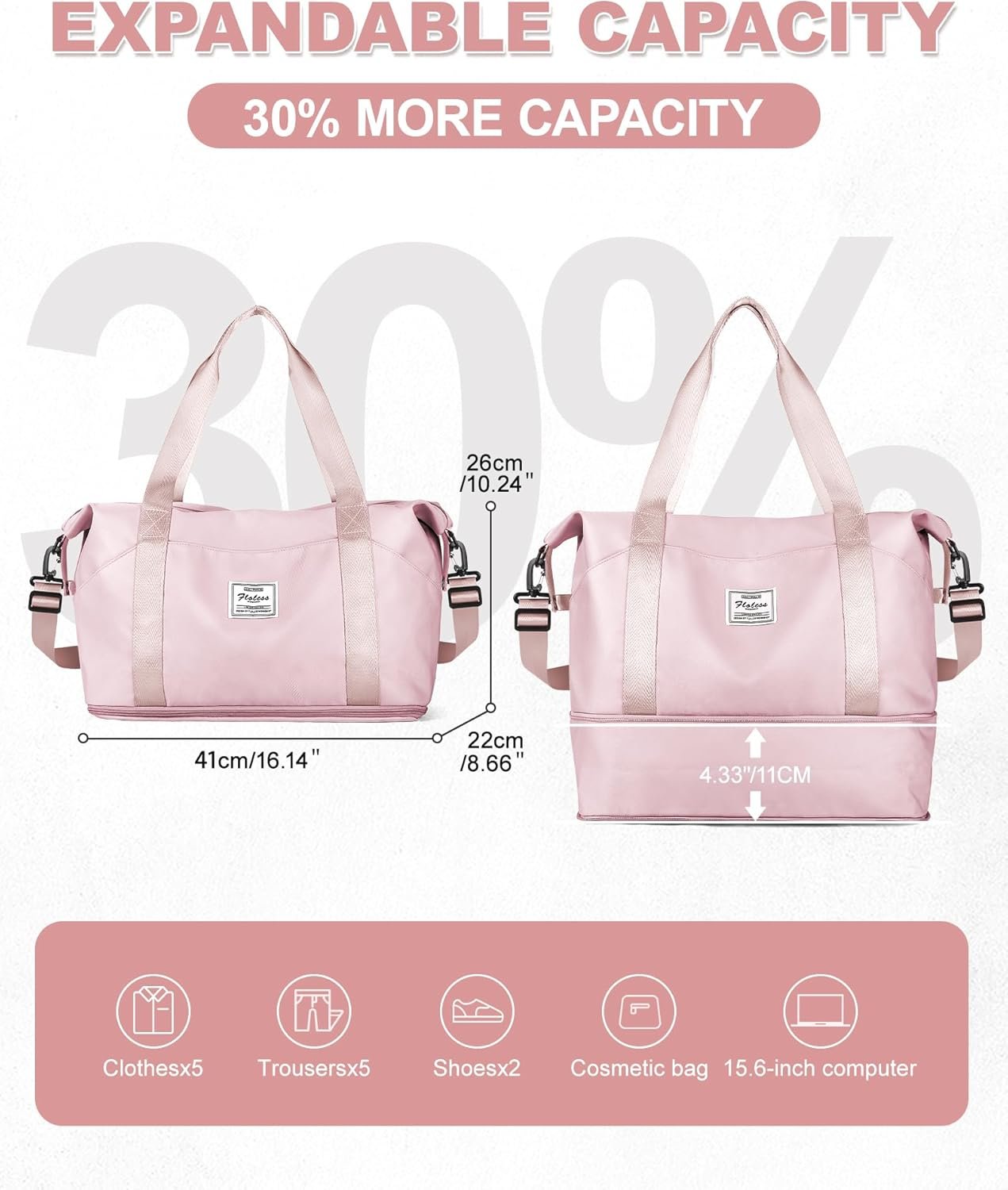 Customers find this duffel bag to be a versatile travel companion that works well as a carry-on and can be used as a tote bag. The bag is roomy, with one customer mentioning it fits 5 large hotel towels, and features a sturdy build that holds up well on multiple flights. Customers appreciate its expandability, with the bottom easily expanding for more room, and its exterior pockets, particularly the back pocket for ID/Passport and the one that fits over the luggage handle. Customers find it offers good value for money, with strong zippers and a nice sheen to the fabric.