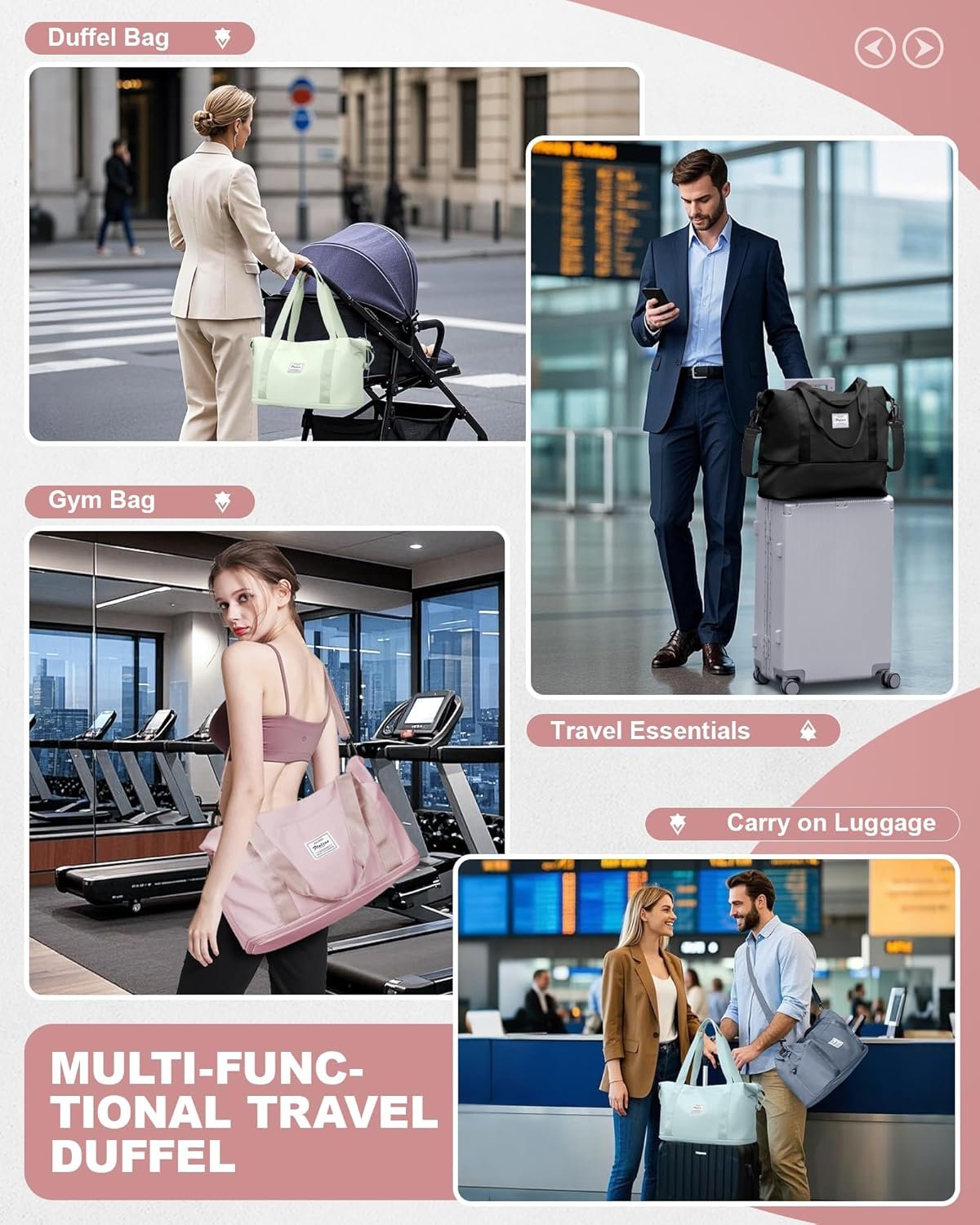Travel Duffel Bag, Sports Tote Gym Bag, Shoulder W